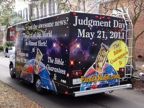 Back when I originally encountered the May 21 as Judgment Day idea I assumed it to be fringe. So many people have given different dates for when the world is going to end, and with such a potpourri of ways in which this is going to happen, I just assumed May 21st to be another one. Turns out I was wrong. I certainly had no idea May 21st was bus-worthy!